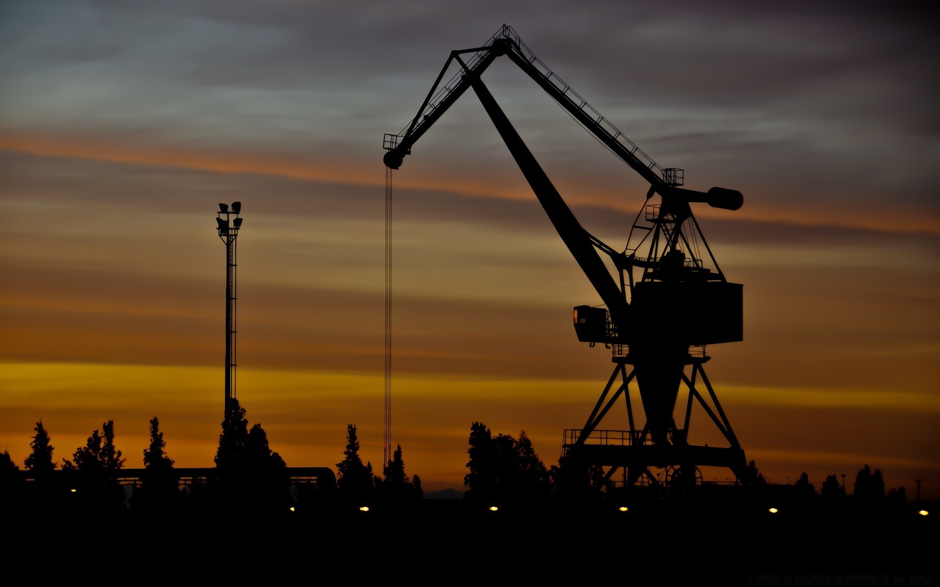 Kräne bei Sonnenuntergang im Sommer