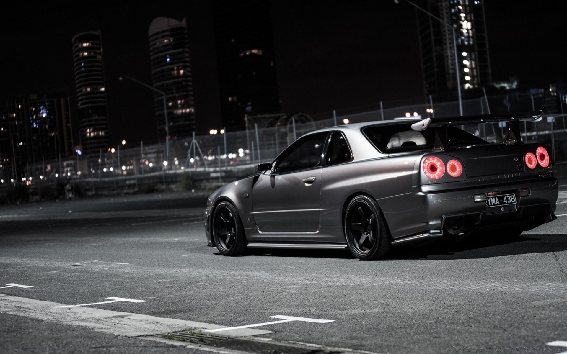 Ein schwarzes Auto vor dem Tor. Asphalt