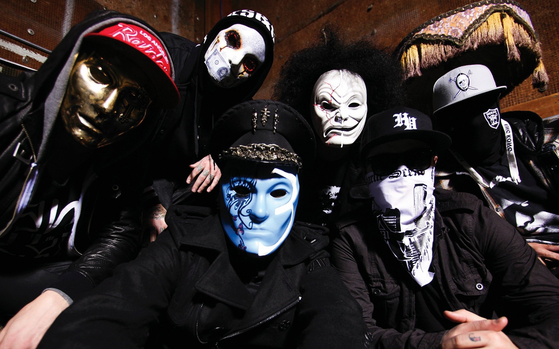 Menschen aus der Musikgruppe tragen Masken