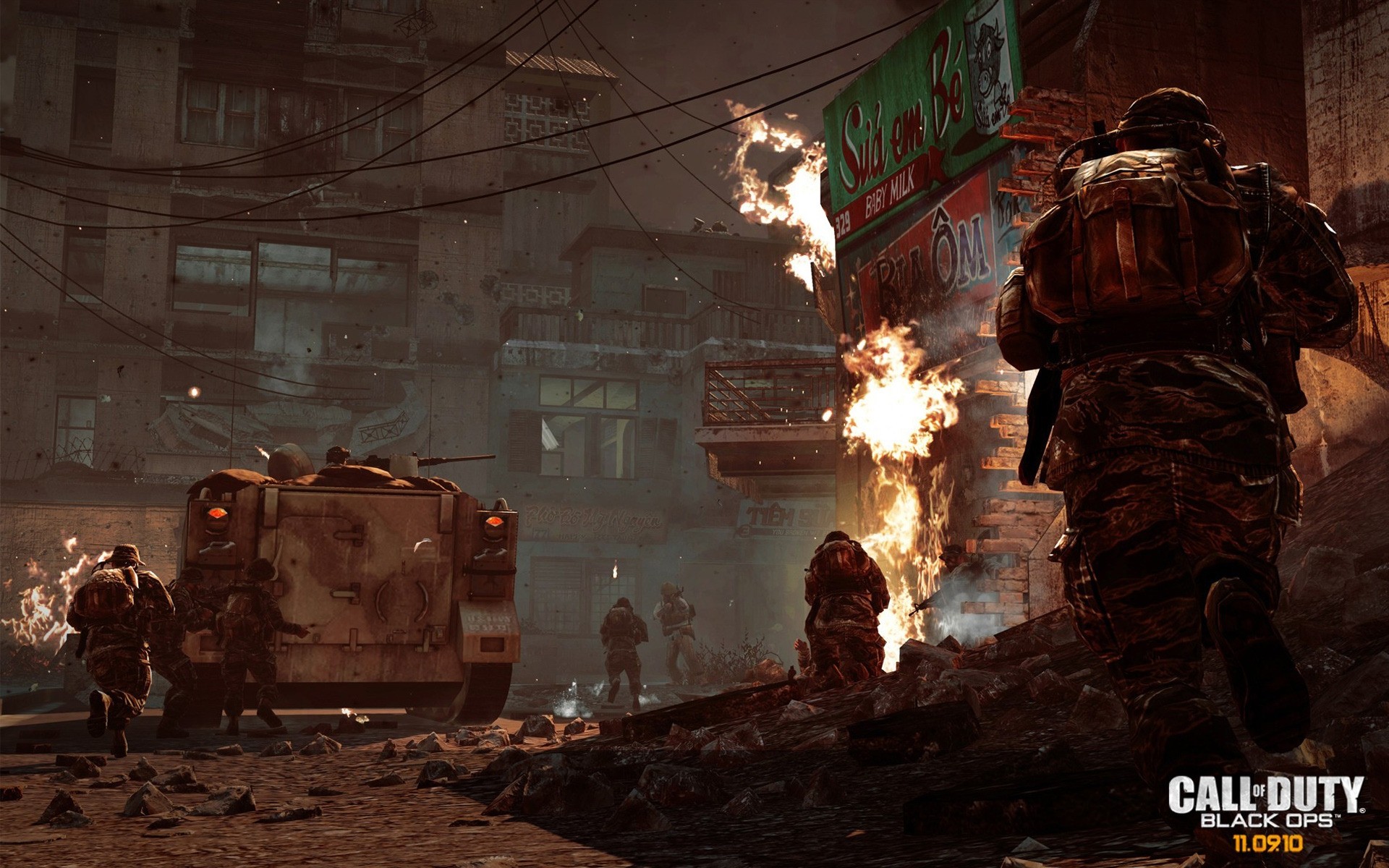 Ein Mann steht in Munition mit einer riesigen Waffe