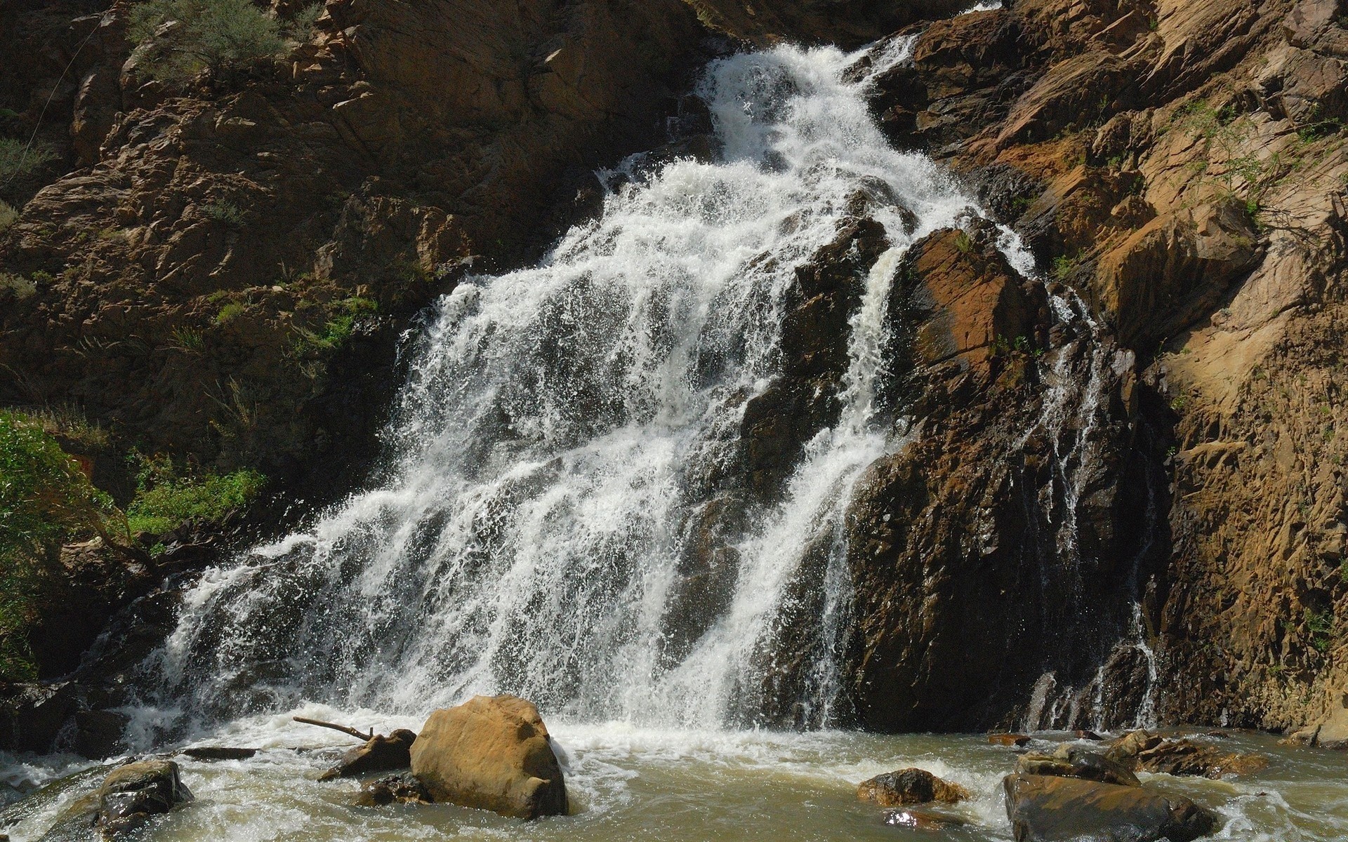 Gänseblümchen und Gras wachsen entlang des Flusses