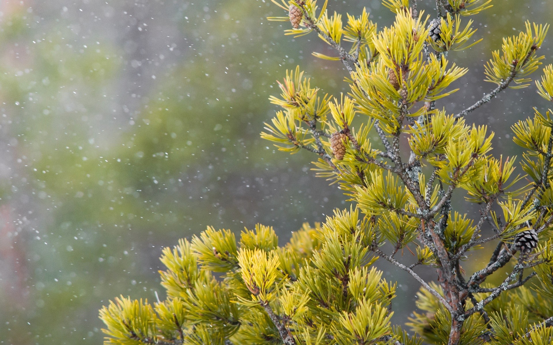 Makroaufnahme von Tautropfen auf einer Pflanze