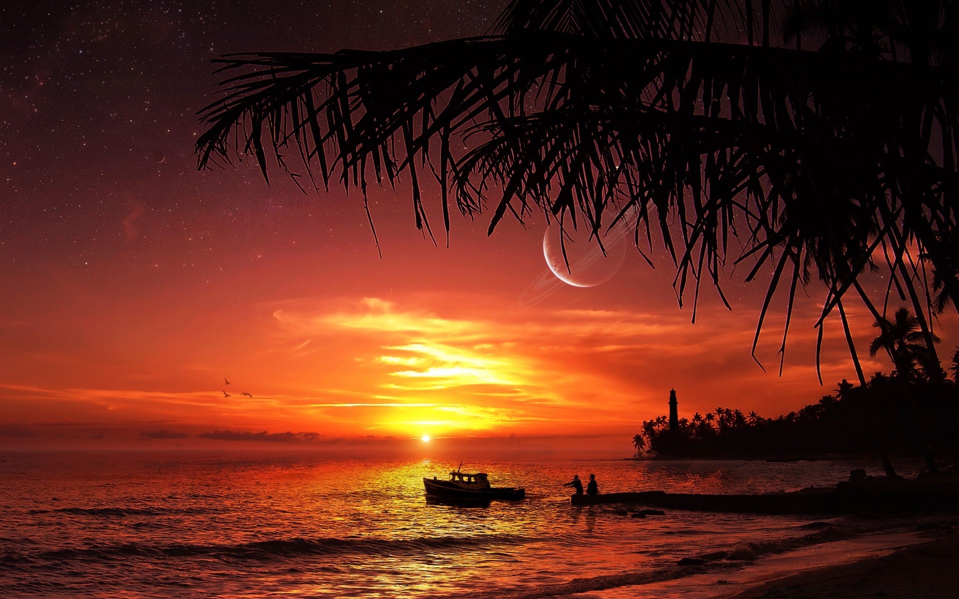 Das meer ist von bäumen bewachsen und von der sonne beleuchtetDas Meer ist von Bäumen bewachsen und von der Sonne beleuchtet