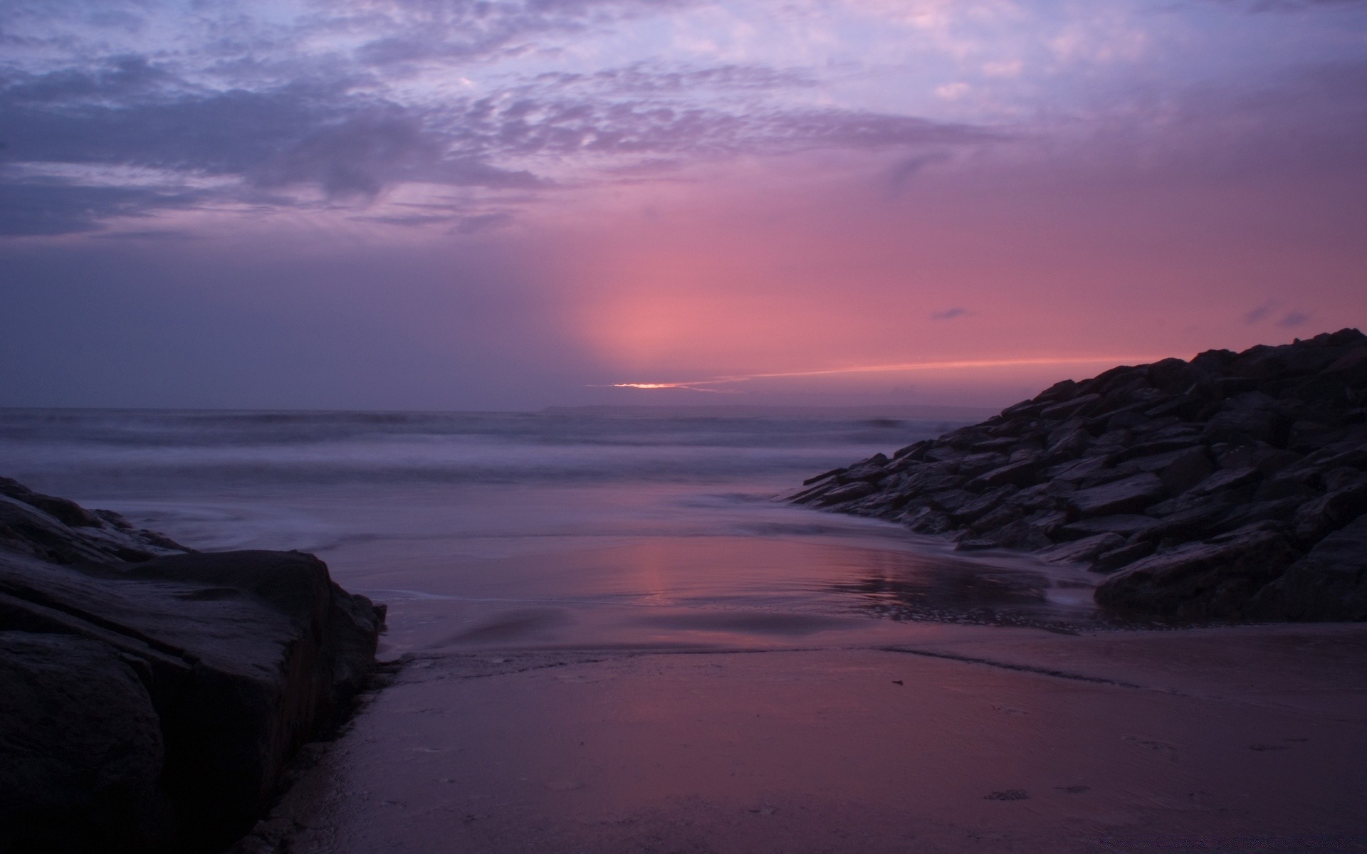 Sehr schöner Sonnenuntergang am Strand am Meer
