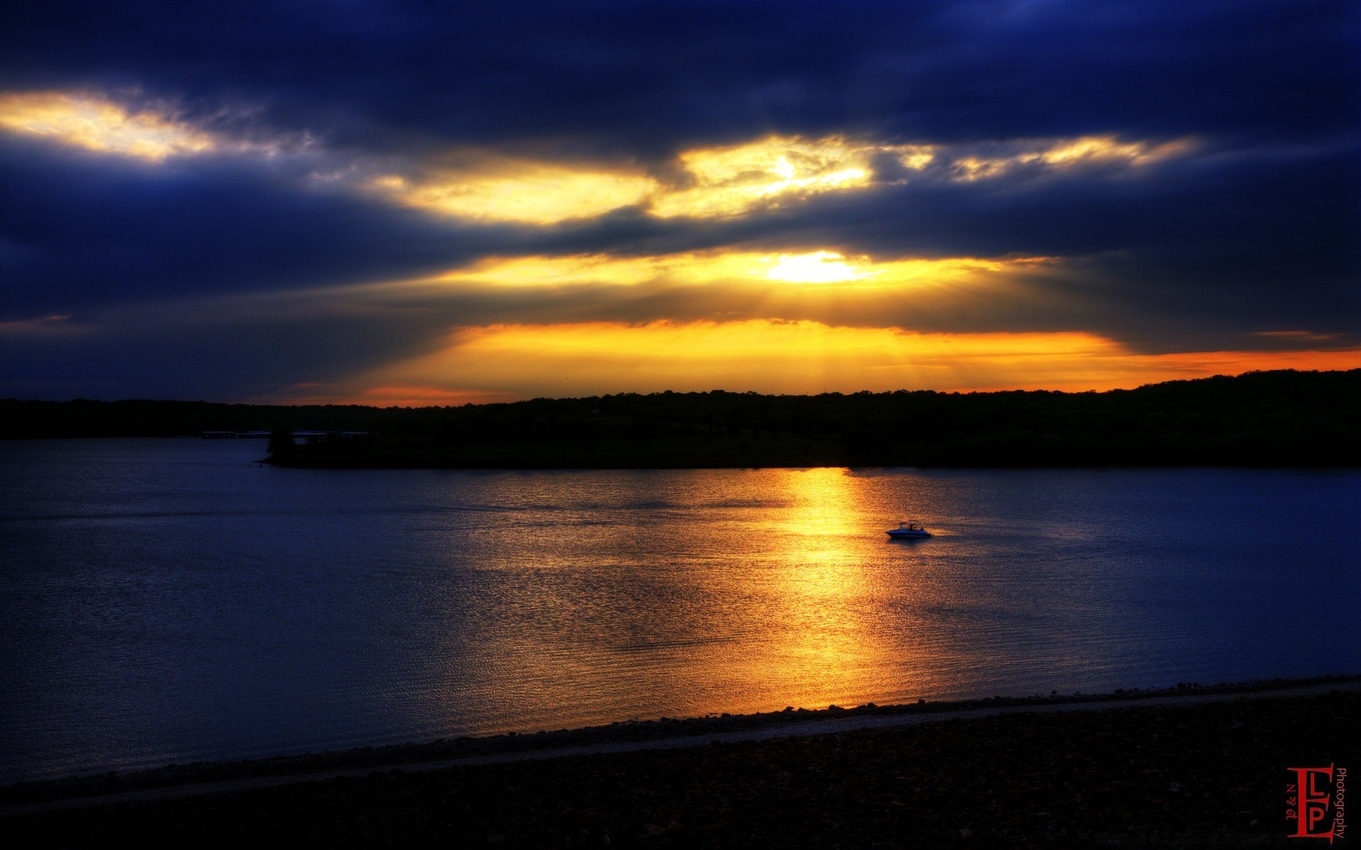 Sonnenuntergang am Meer, Sand, Steine