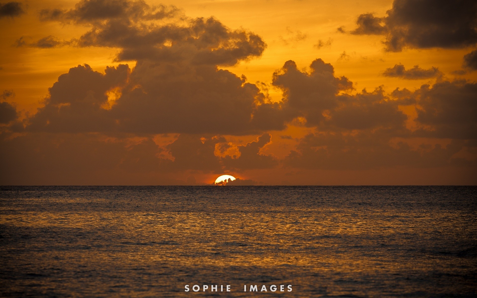 Schöner Sonnenuntergang am Meer mit beleuchteten Wolken