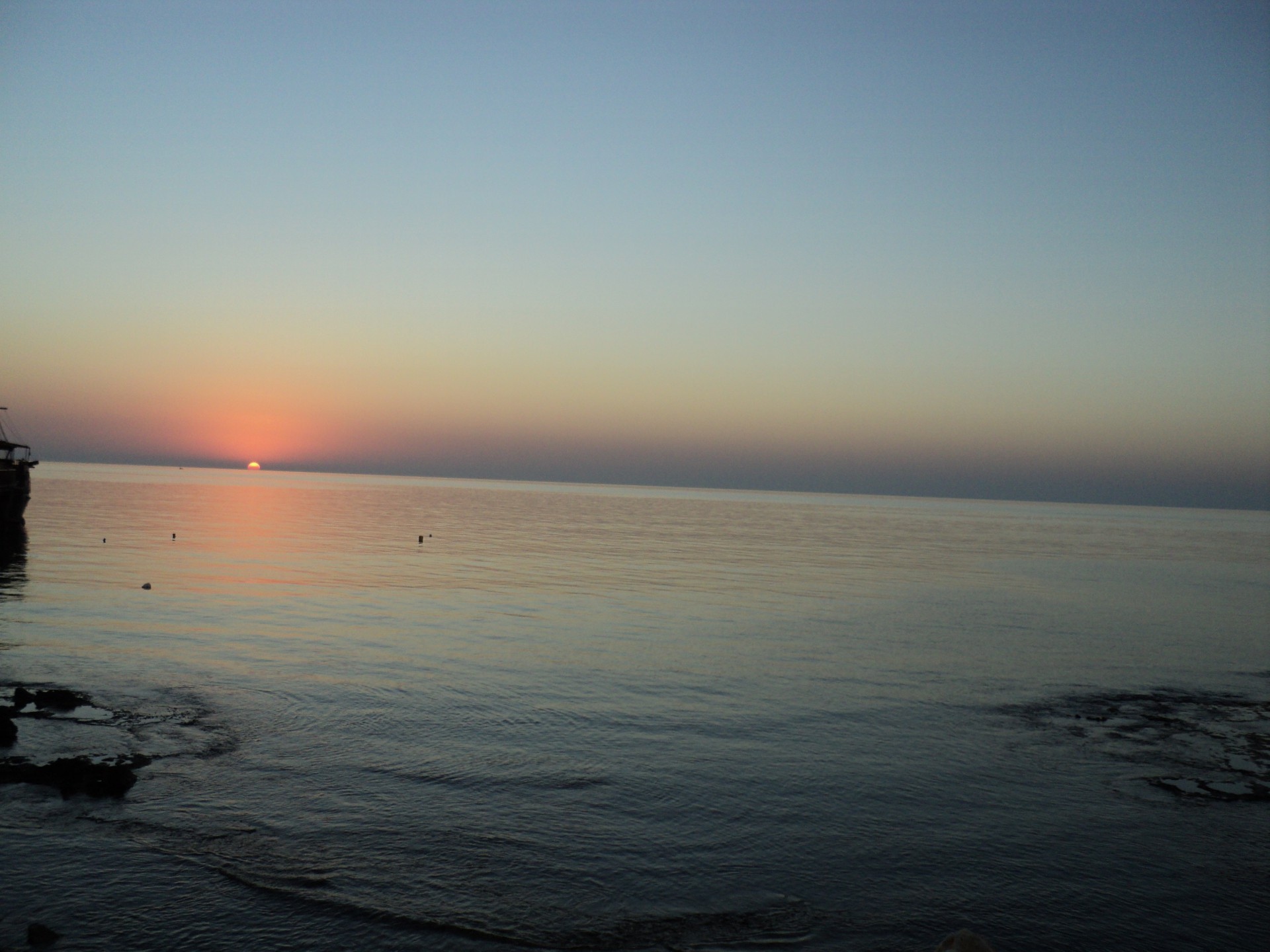 Sonnenuntergang und Sonnenaufgang am Strand von Meer und Meer im Wasser