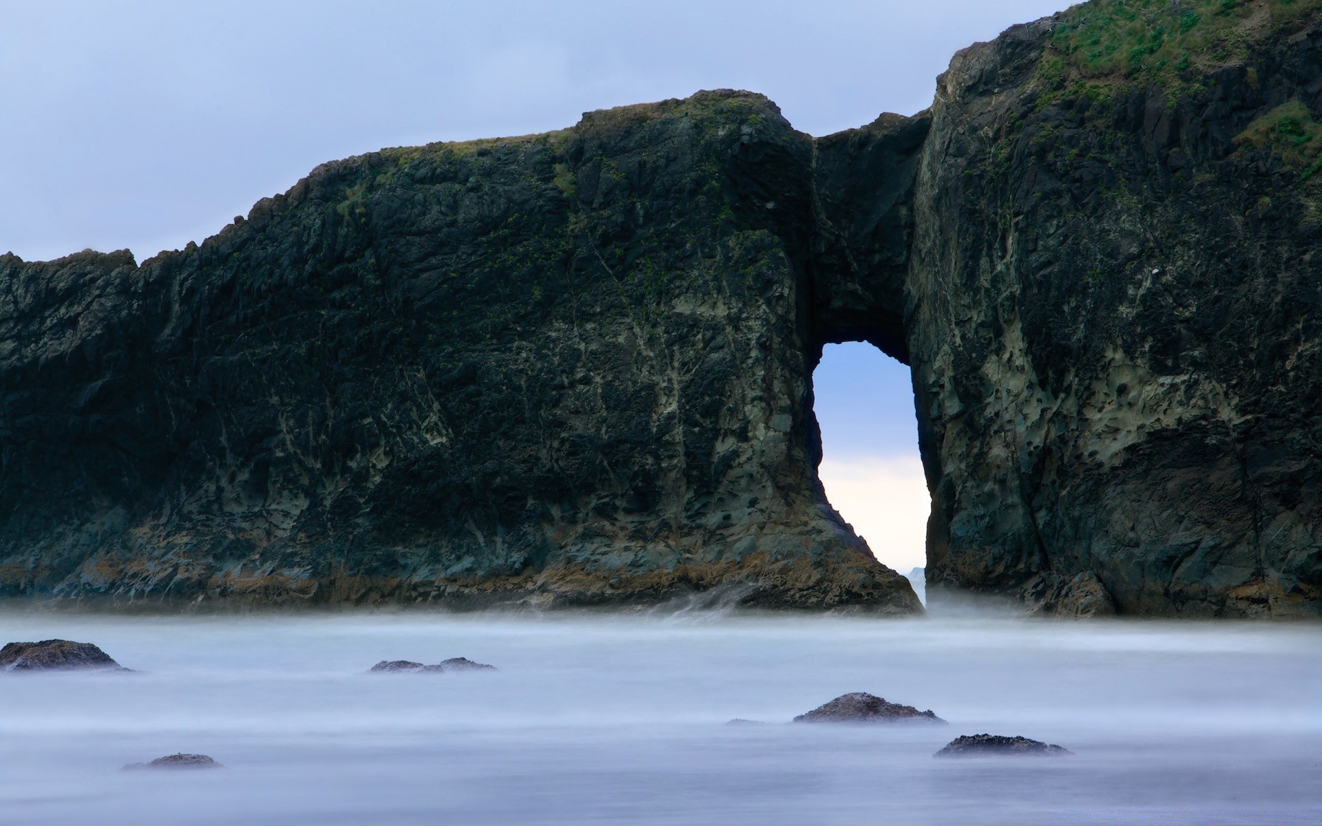 Felsbrücke im nebligen Ozean