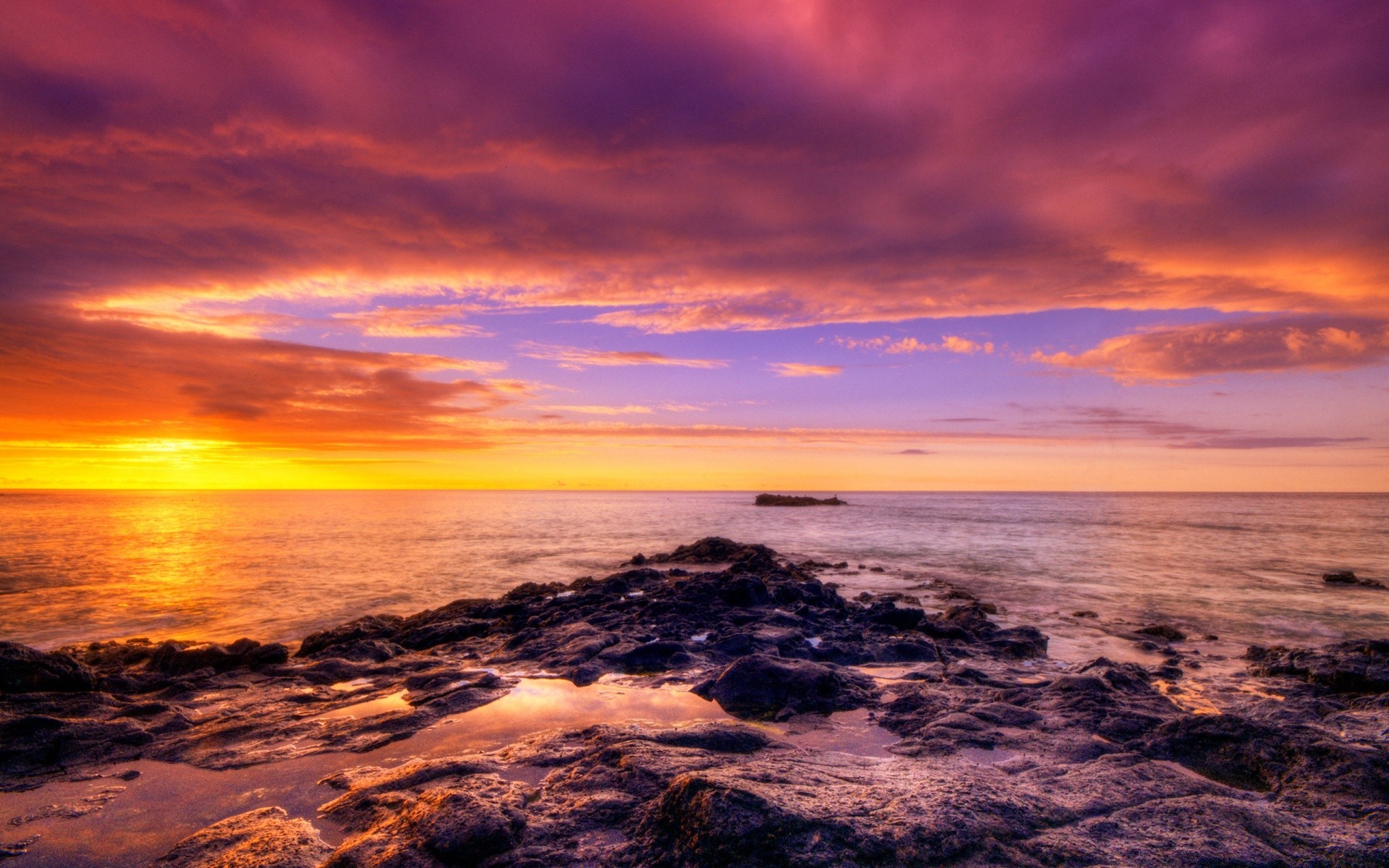 Meer vor dem Hintergrund der Morgendämmerung mit Steinen