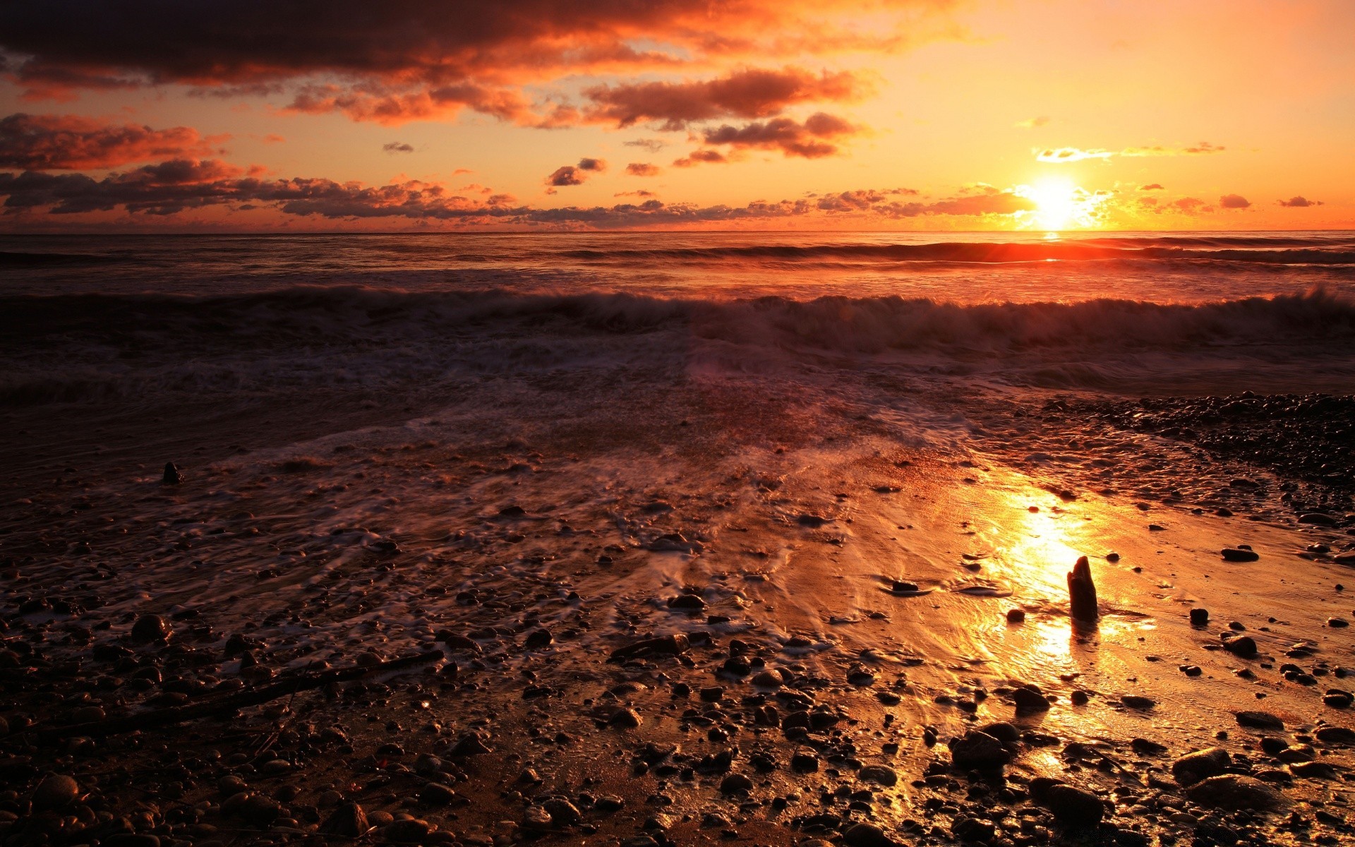 Morgendämmerung an einem felsigen strand, der vom meer gewaschen wirdMorgendämmerung an einem felsigen Strand, der vom Meer gewaschen wird