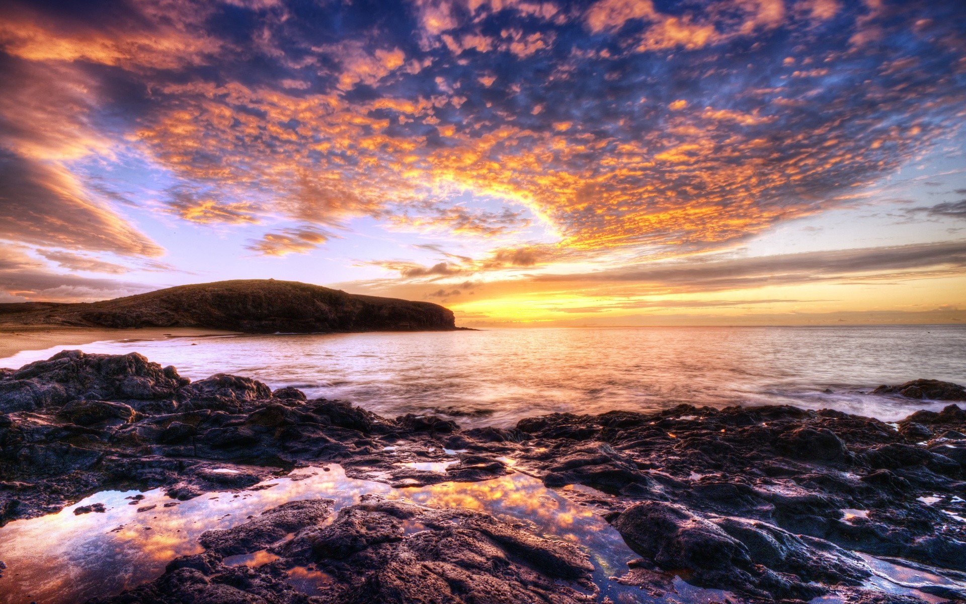 Die sonnenstrahlen brechen durch die wolken über dem meerDie Sonnenstrahlen brechen durch die Wolken über dem Meer