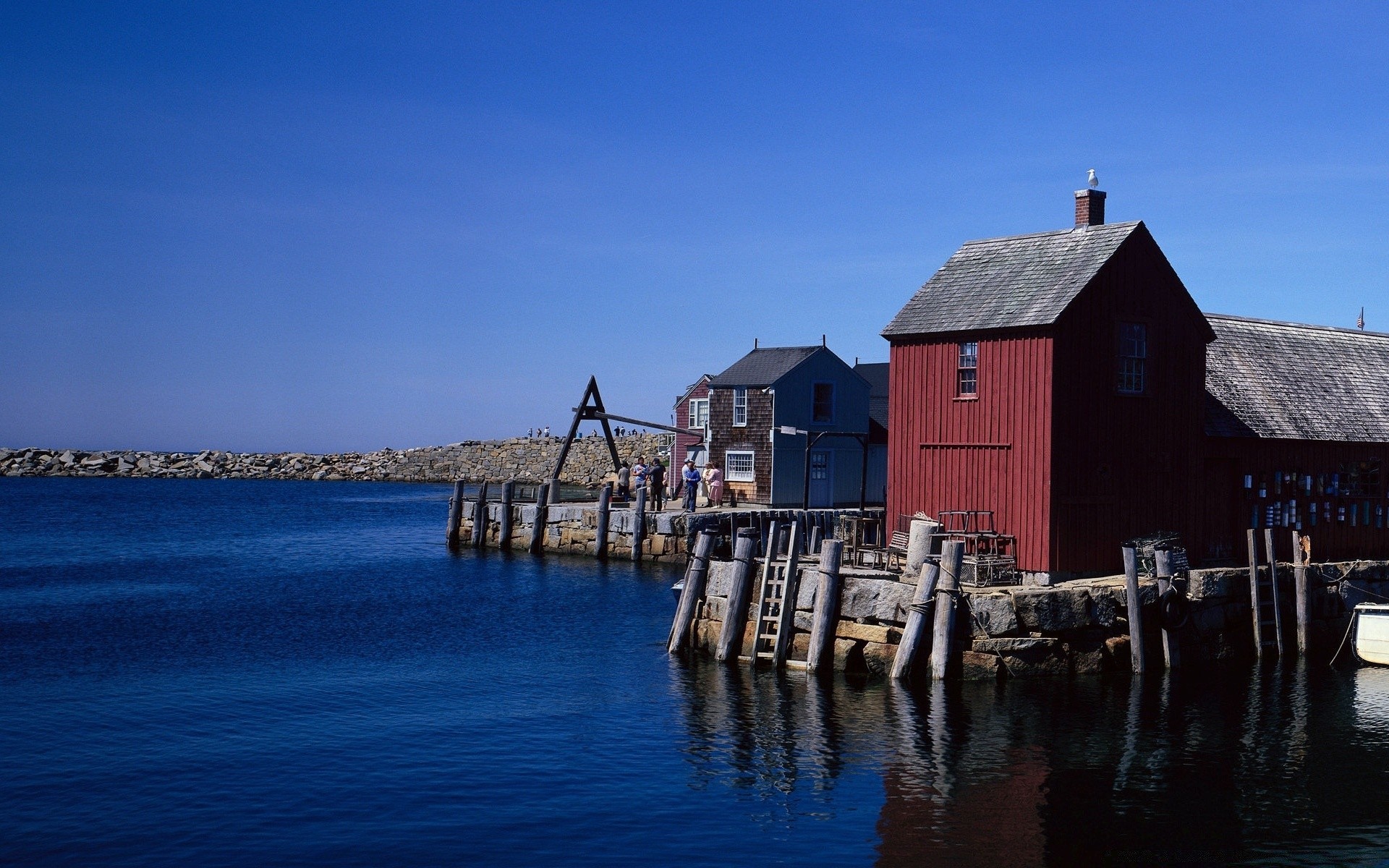 Eine Stadt auf einem Felsen am azurblauen Meer