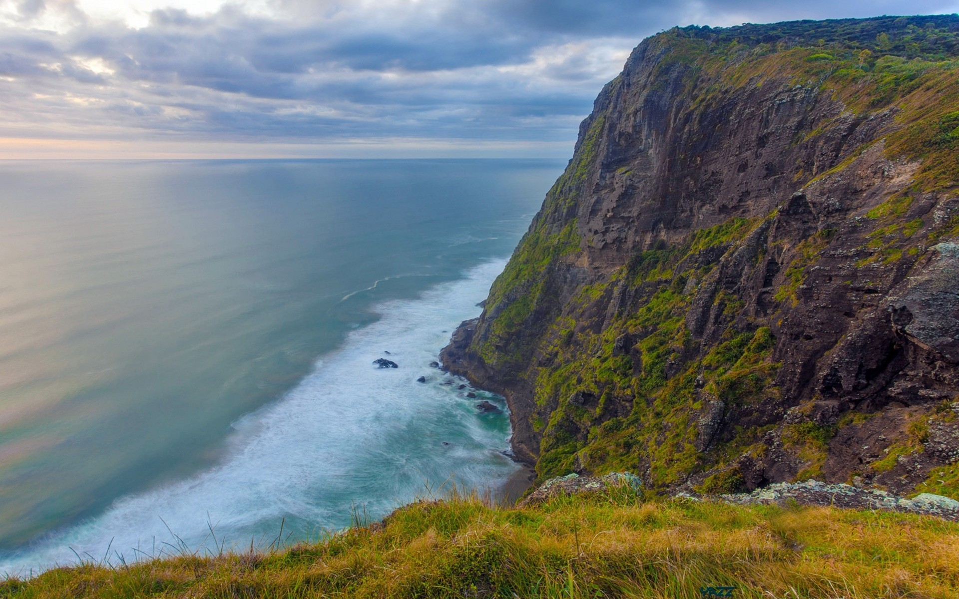 Die küste hat sich im dunkeln des dunstes mit dem meer verbundenDie Küste hat sich im Dunkeln des Dunstes mit dem Meer verbunden