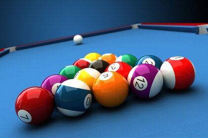Ein Snookerspieler bereitet sich darauf vor, den Ball in die Tasche zu schießen