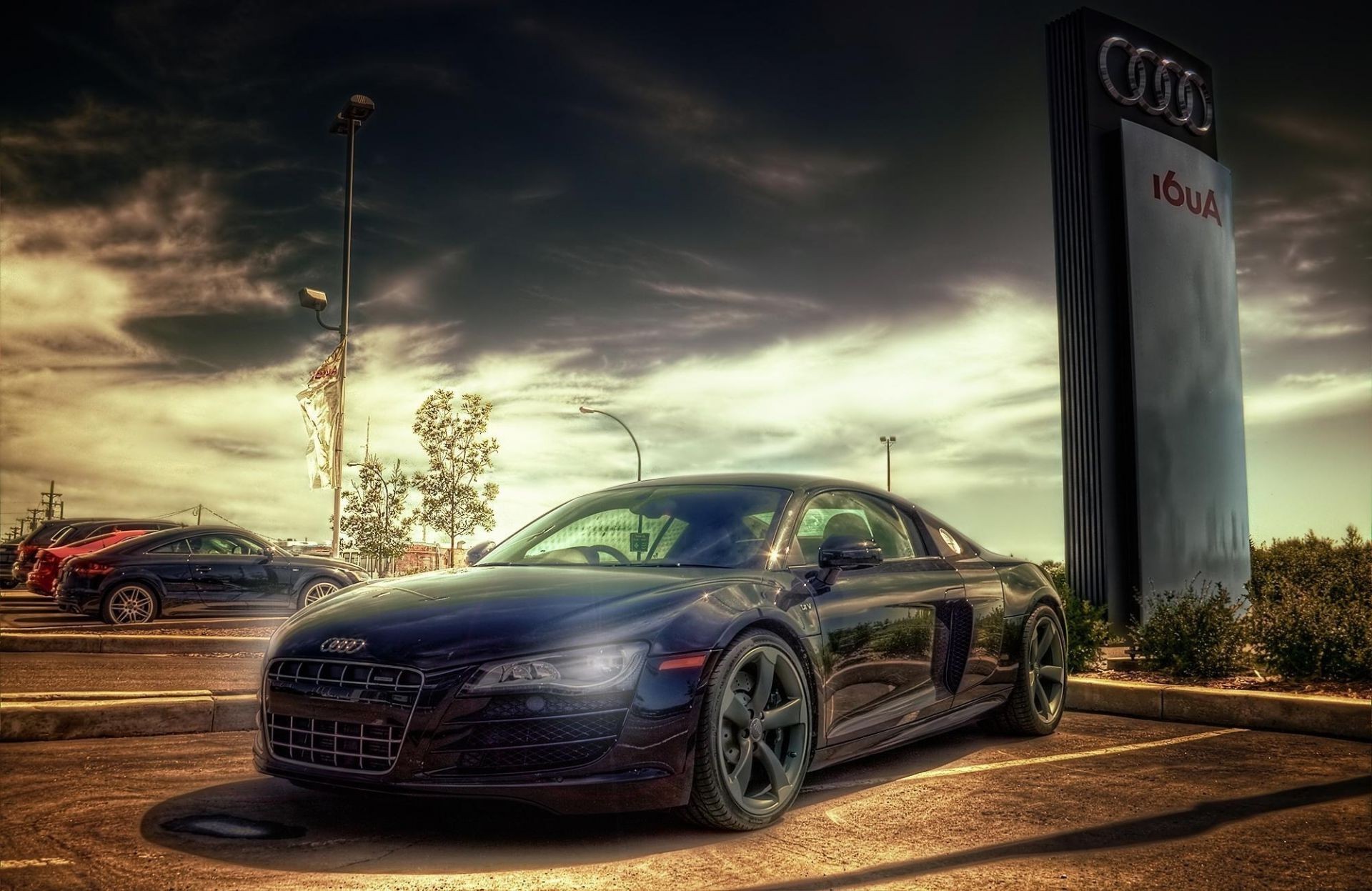 Auto auf dem Hintergrund der Café-Leuchtreklame