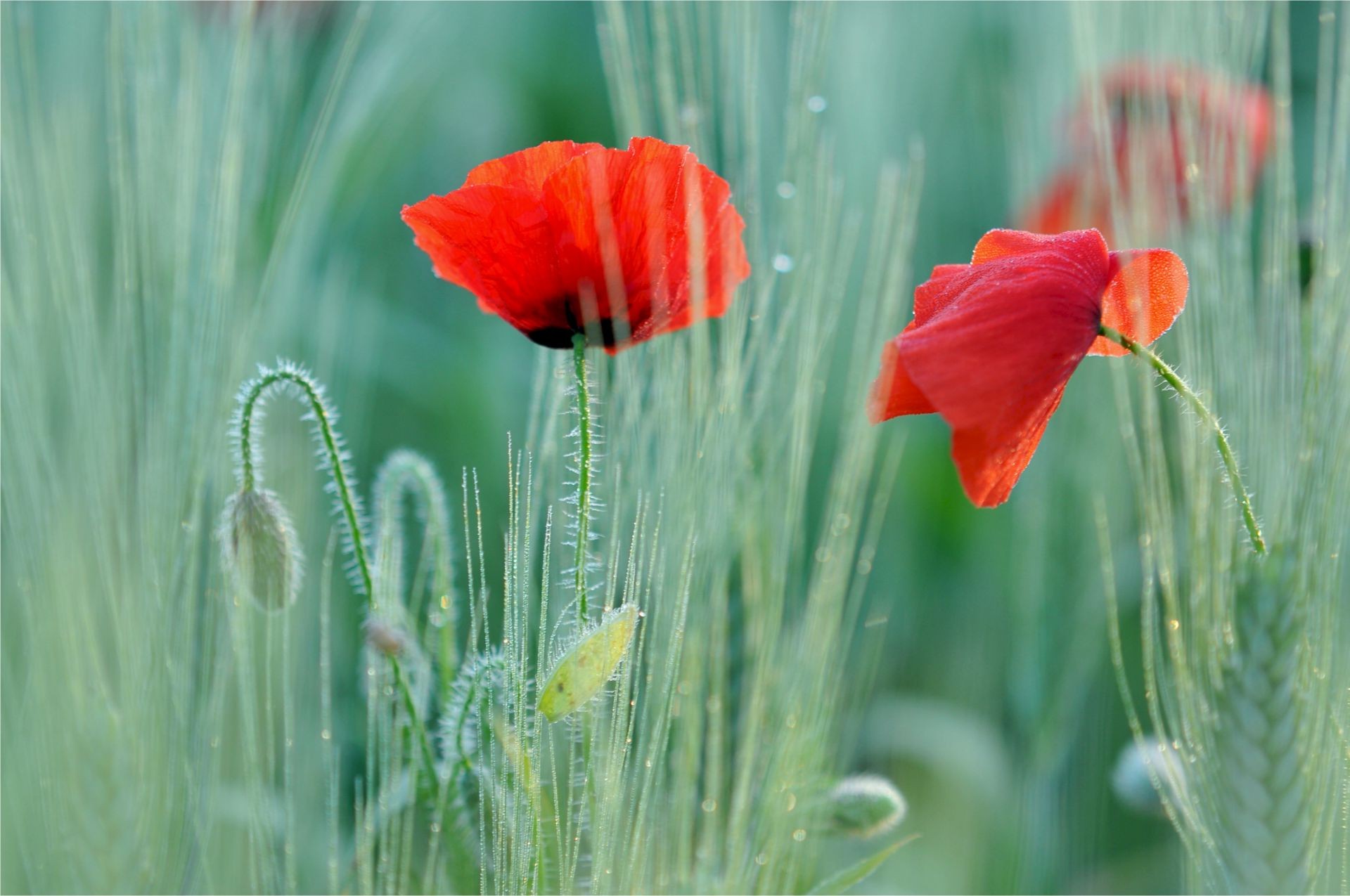 Rote Mohnblumen im grünen Gras