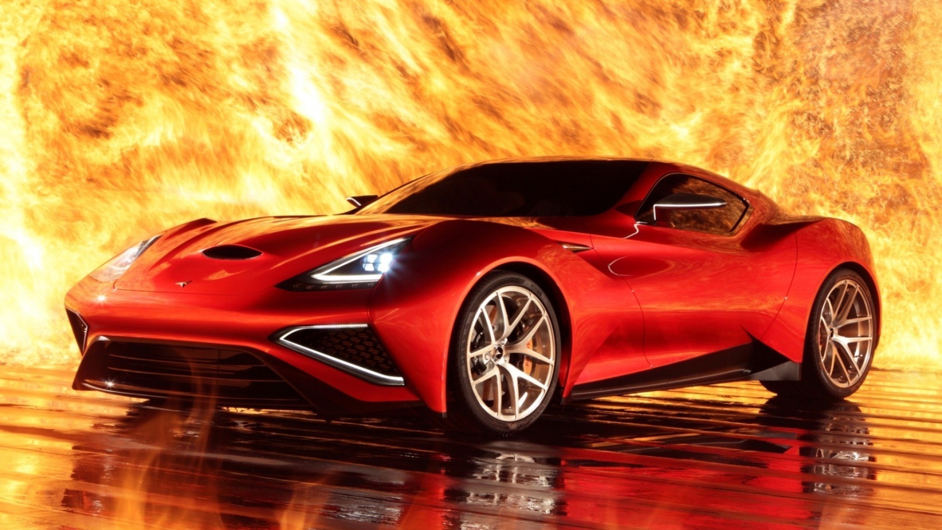Foto von Sportwagen auf Hintergrund eines Oldtimers