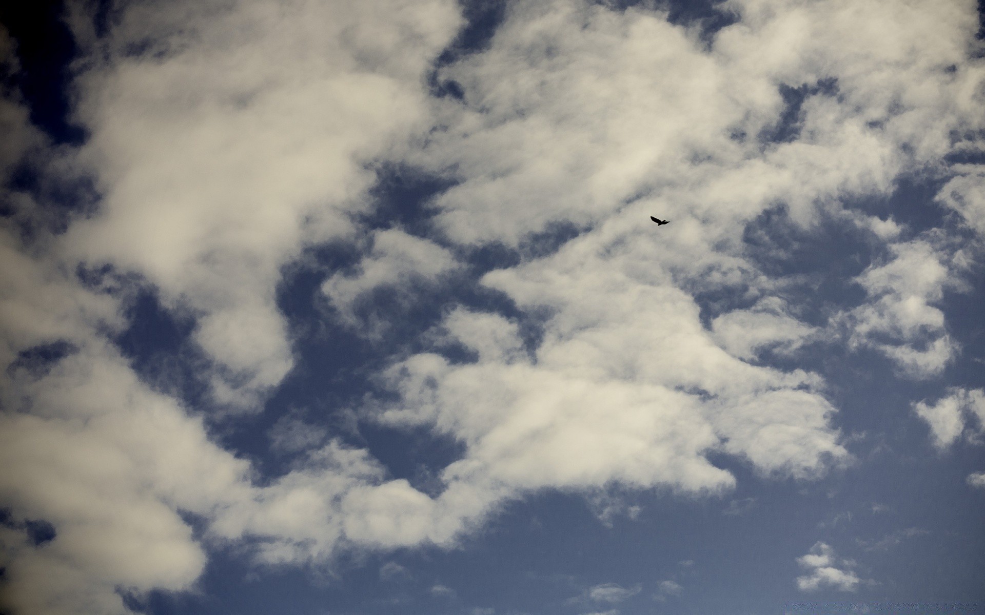 Die Wolken. Blauer Himmel. Vogel am Himmel