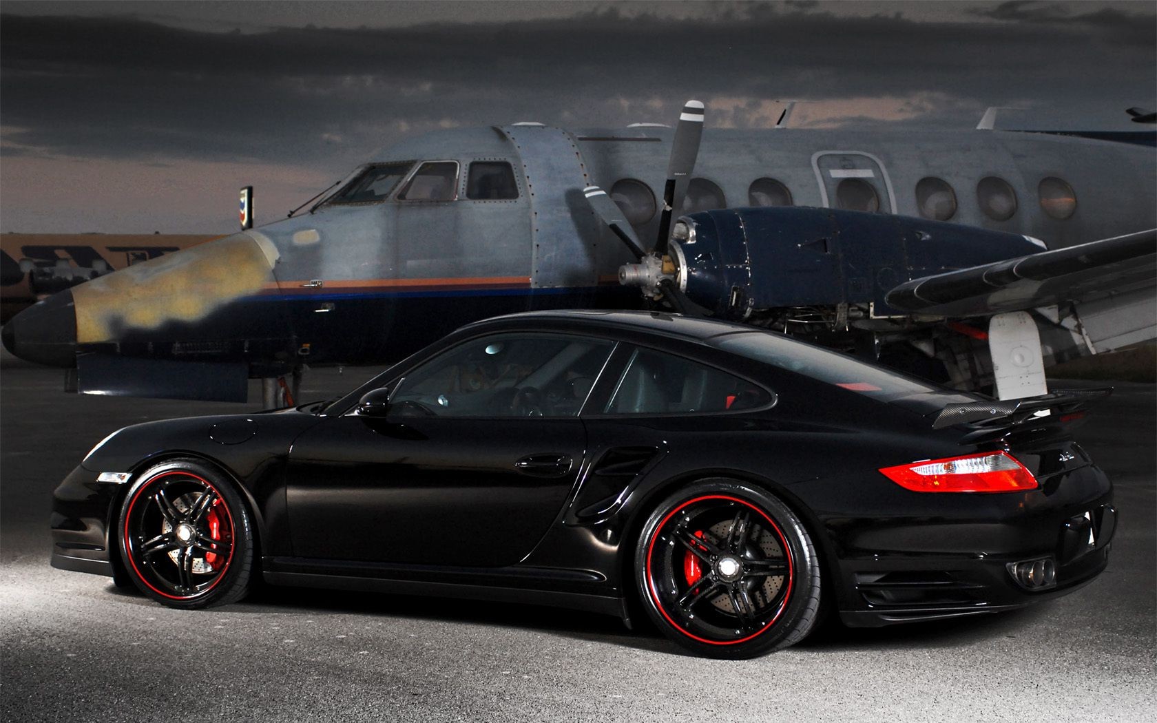 Schwarzer Sportwagen mit ausgeprägten Rädern