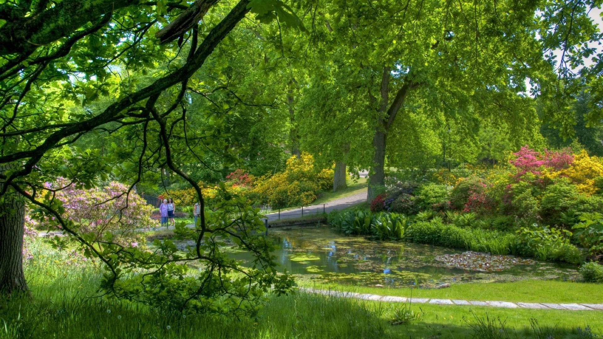 Grüner Sommerpark mit See