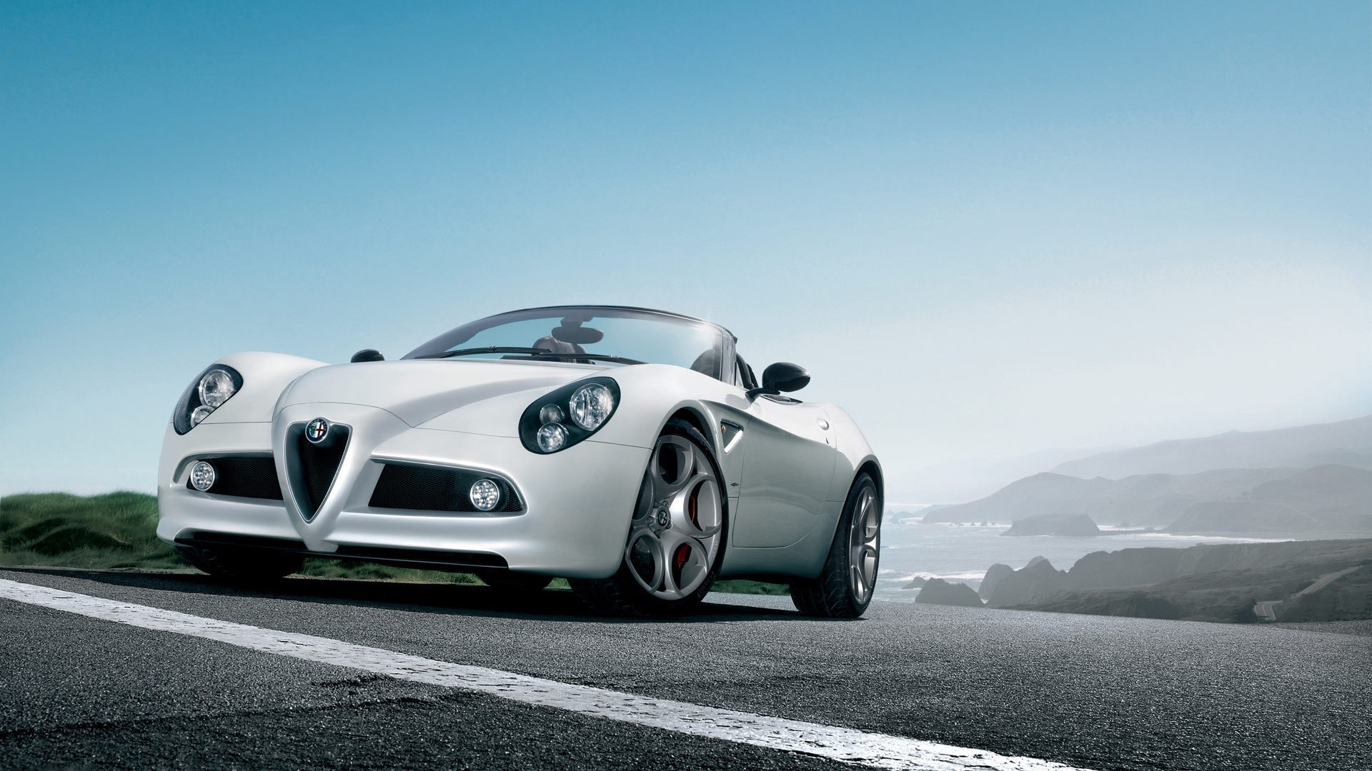 Sportwagen auf dem Hintergrund der schönen Landschaft
