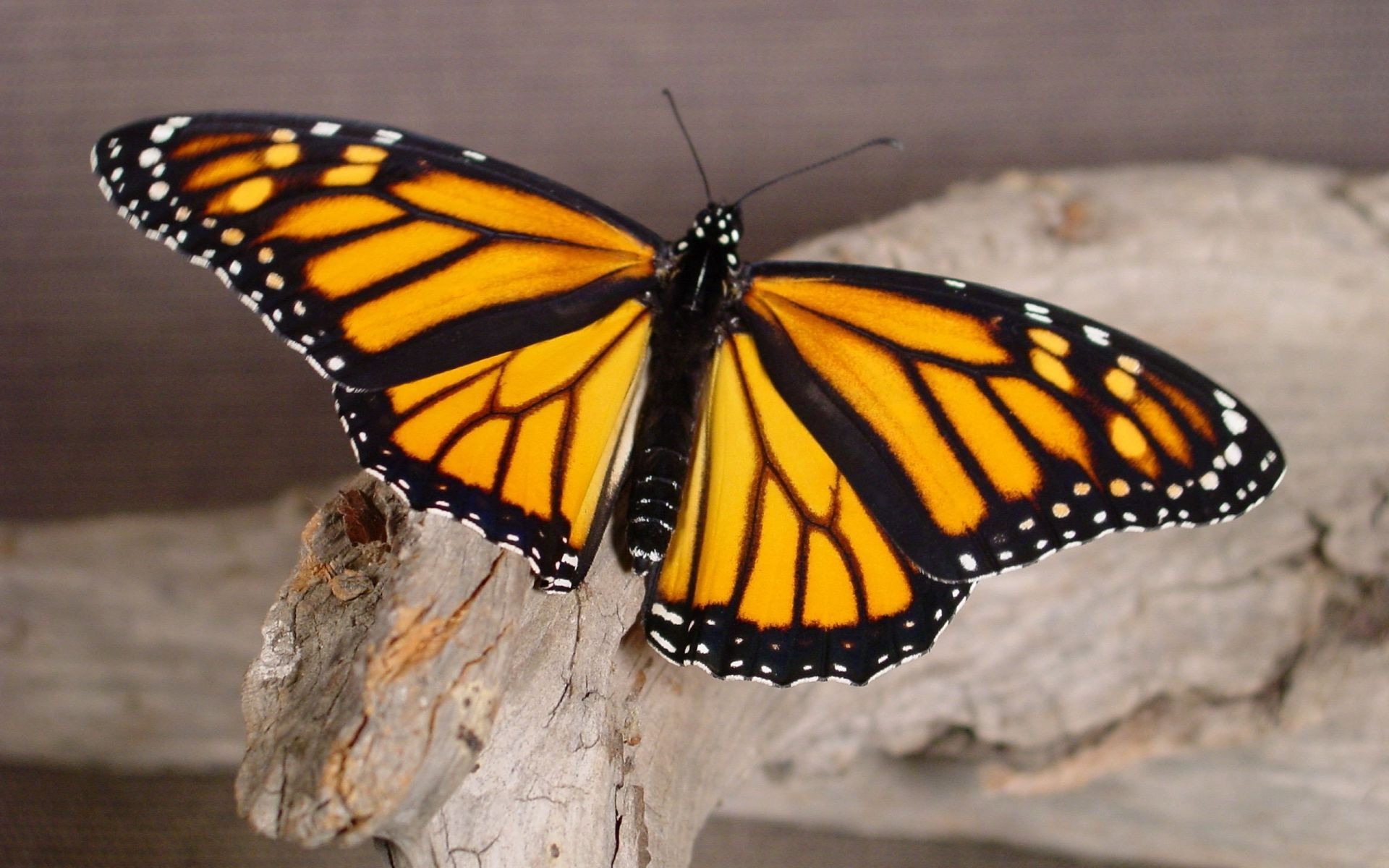 Ein Schmetterling sitzt auf einer orangefarbenen Blume