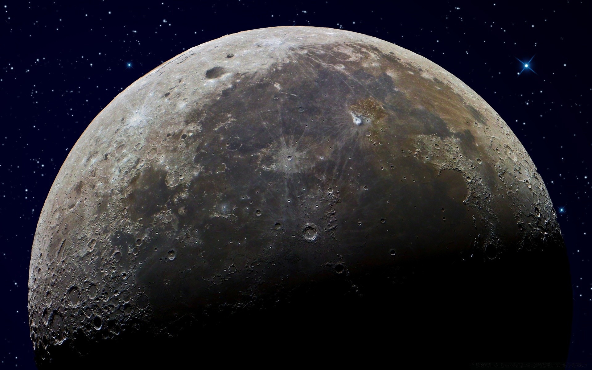 Mond, der im Wasser vor dem Hintergrund des Sternenhimmels ertrinkt