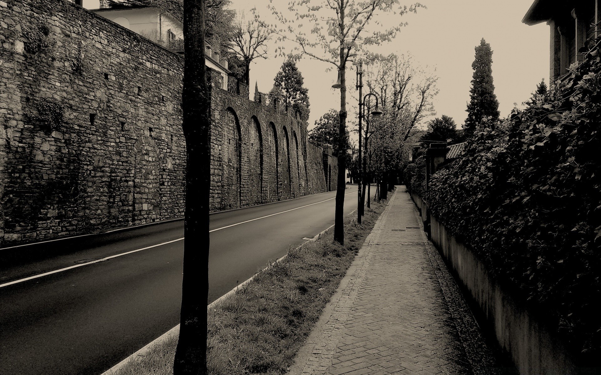 Monochromes Foto von einem Mädchen mit zwei Hunden in der Natur