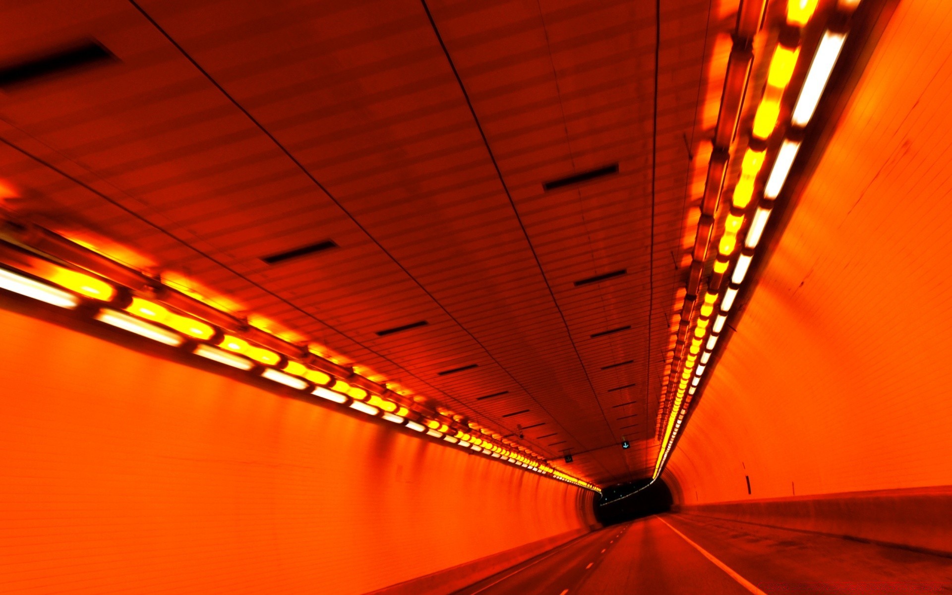 Roter Tunnel und brennende Lampen