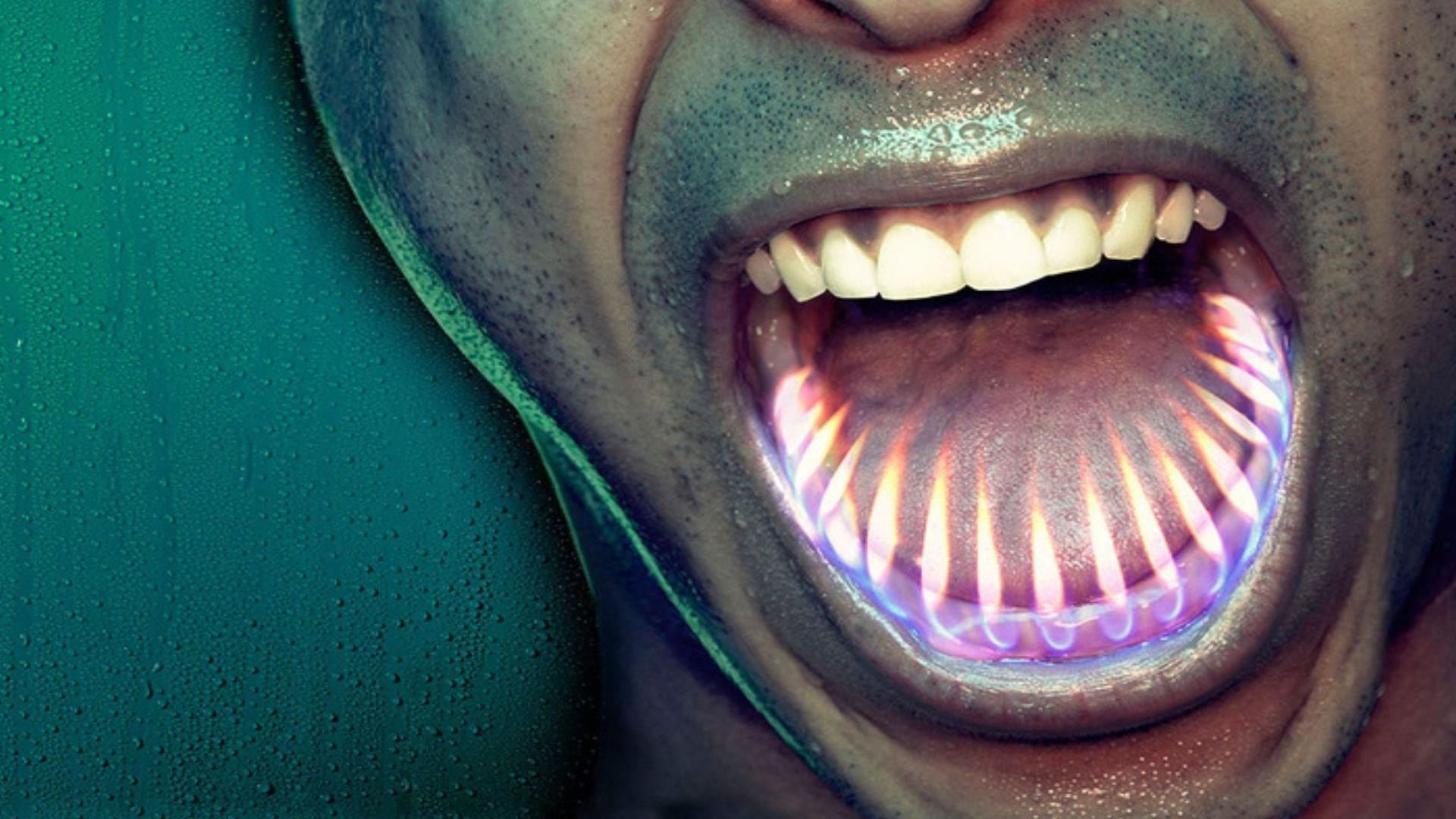 Offener Mund mit Lichtern anstelle der unteren Zähne