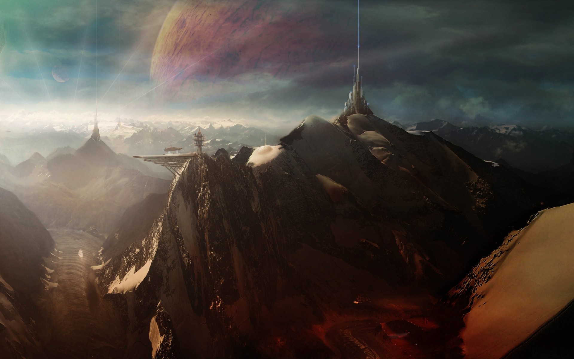 Unglaubliche Schlösser auf den Bergen im kosmischen Stil