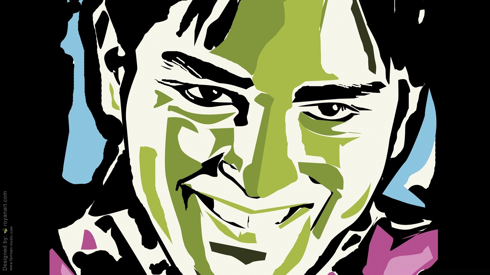 Grünes Gesicht des Mannes auf schwarzem Hintergrund