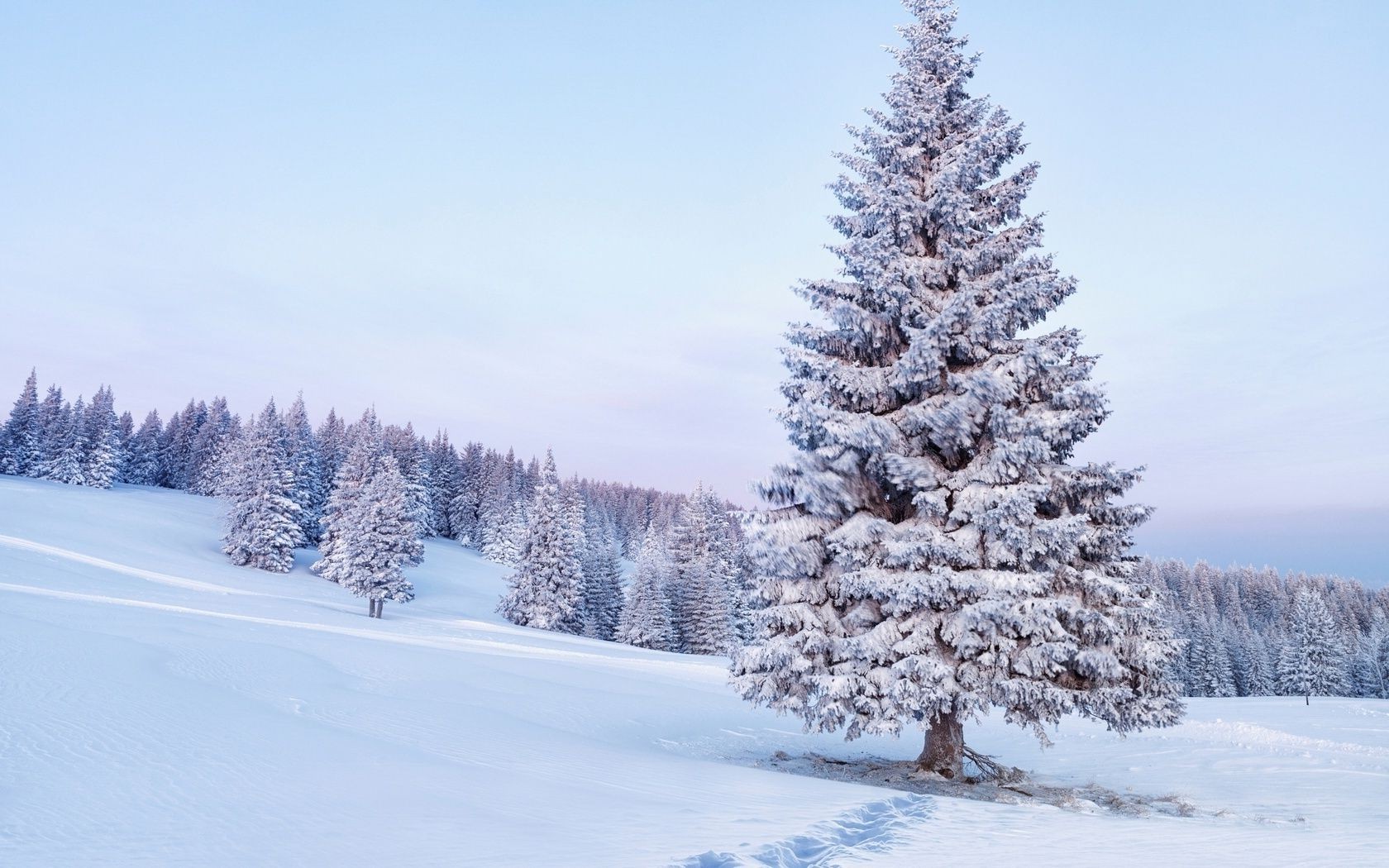 Flauschiger Weihnachtsbaum im Schnee im Winter