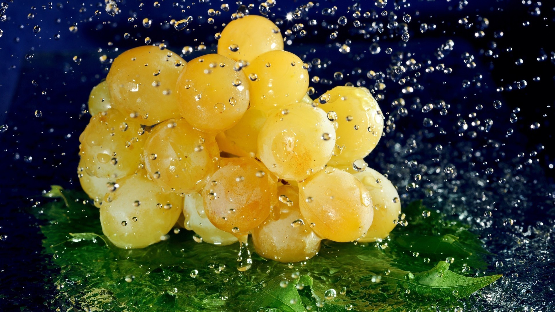 Traubenbündel in Wasserspritzern