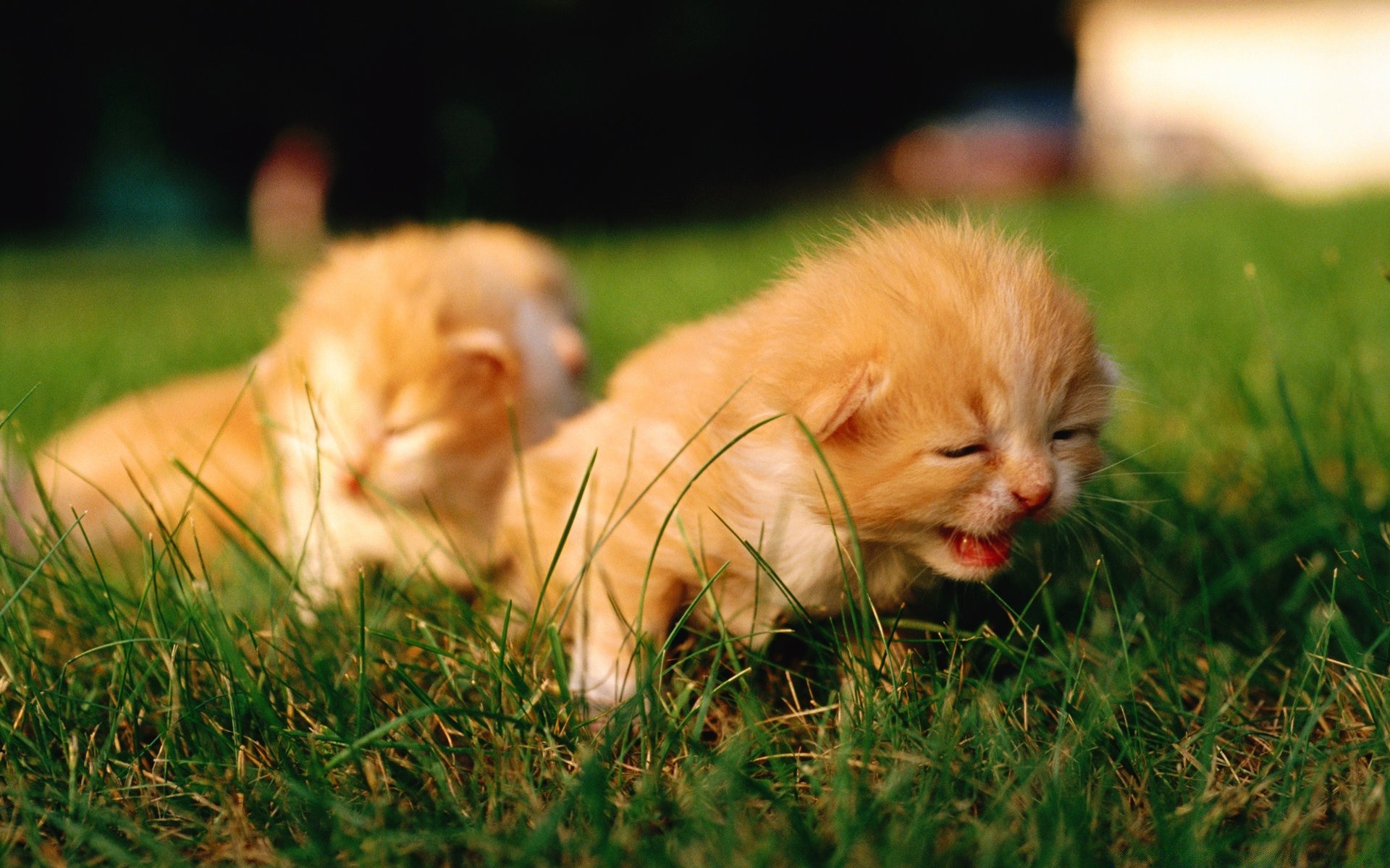Niedliche Kätzchen auf grünem Gras