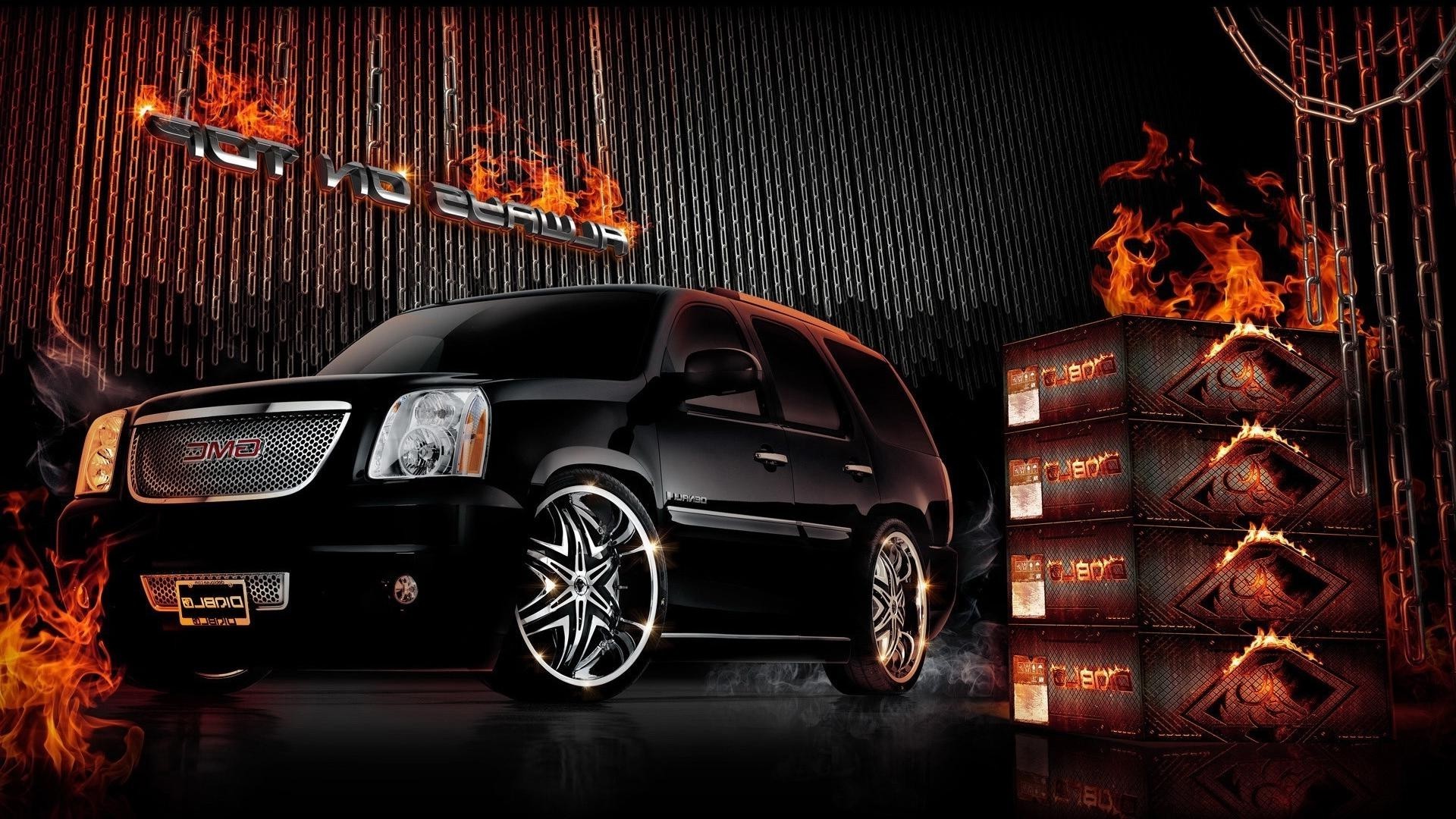 Ein schöner neuer SUV, der von Feuer umgeben ist