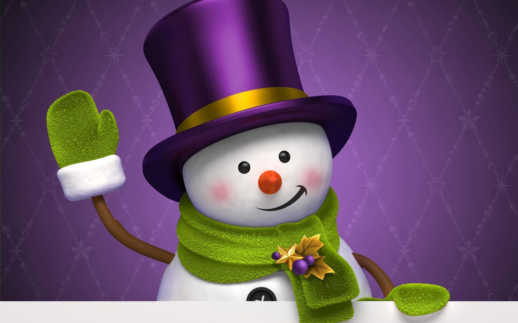 Ein winkender Schneemann mit einem Zauberhut