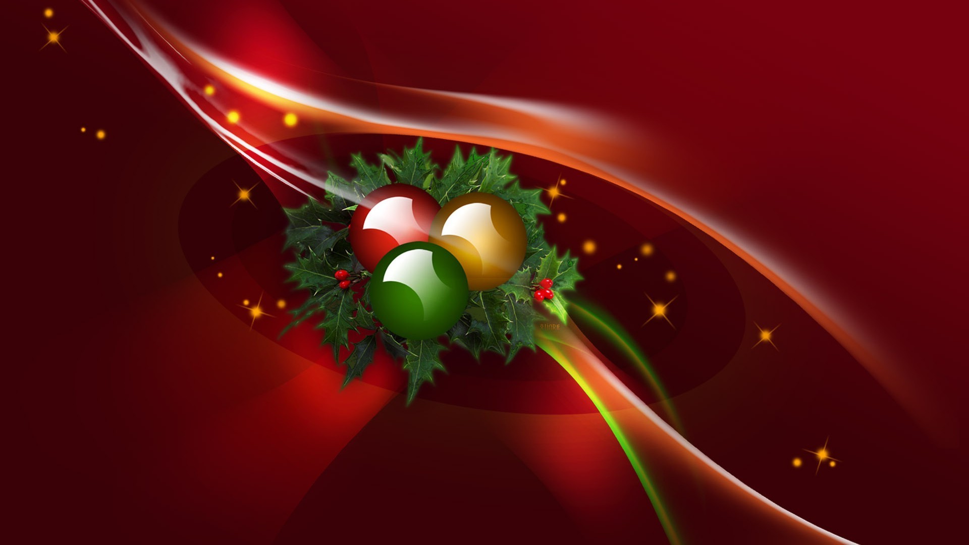 Kugeln auf einem Weihnachtszweig auf rotem Hintergrund