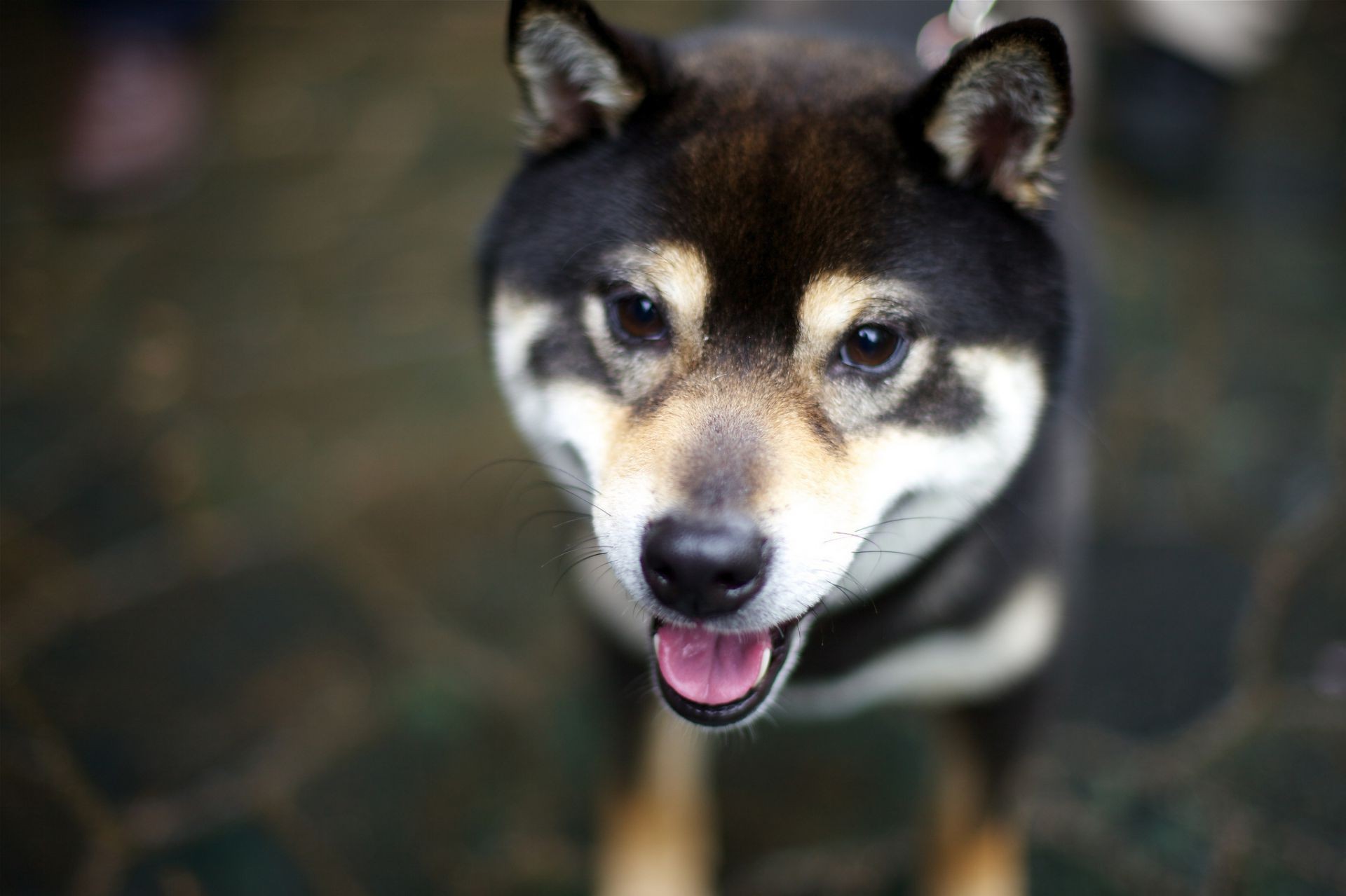 Ein süßer, dunkler Welpe mit hellen Flecken auf der Schnauze