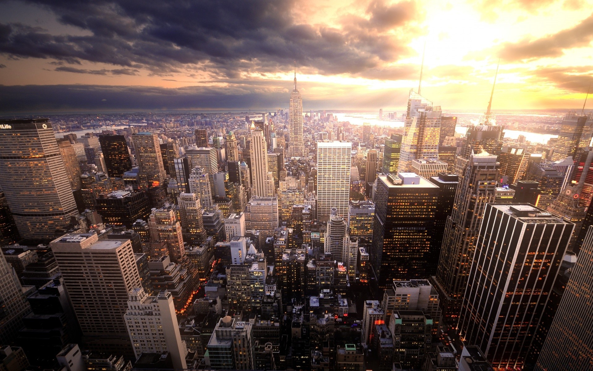 Wolkenkratzer leuchten nachts mit ihrer Beleuchtung