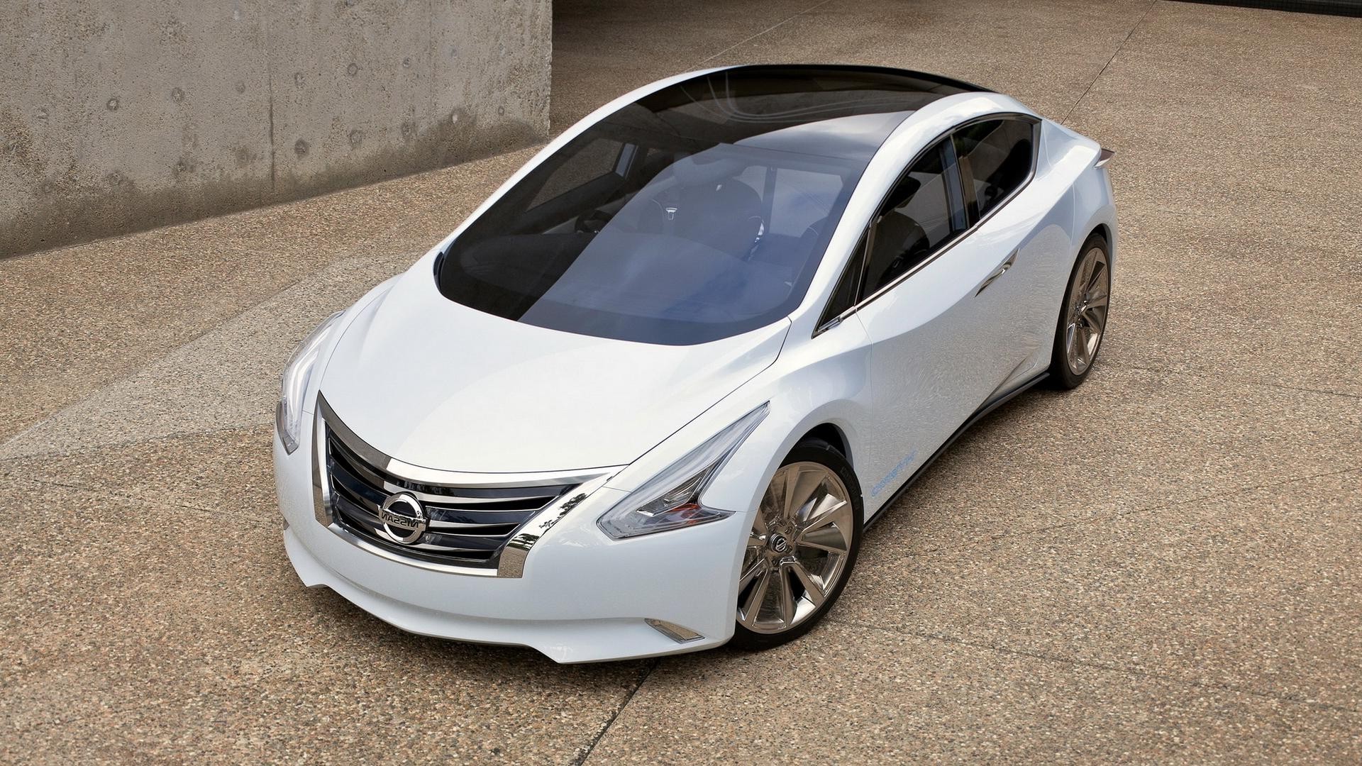 Weißer Nissan auf der Straße neben einer Betonplatte