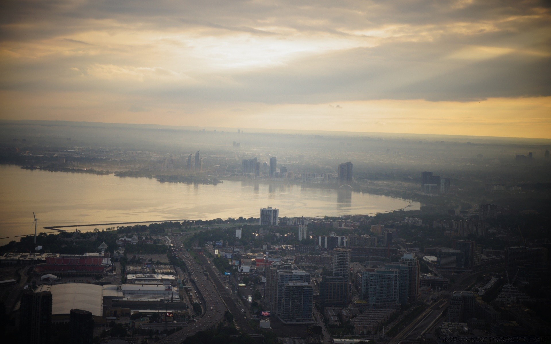 Schöne stadt bei sonnenuntergang aus der vogelperspektiveSchöne Stadt bei Sonnenuntergang aus der Vogelperspektive