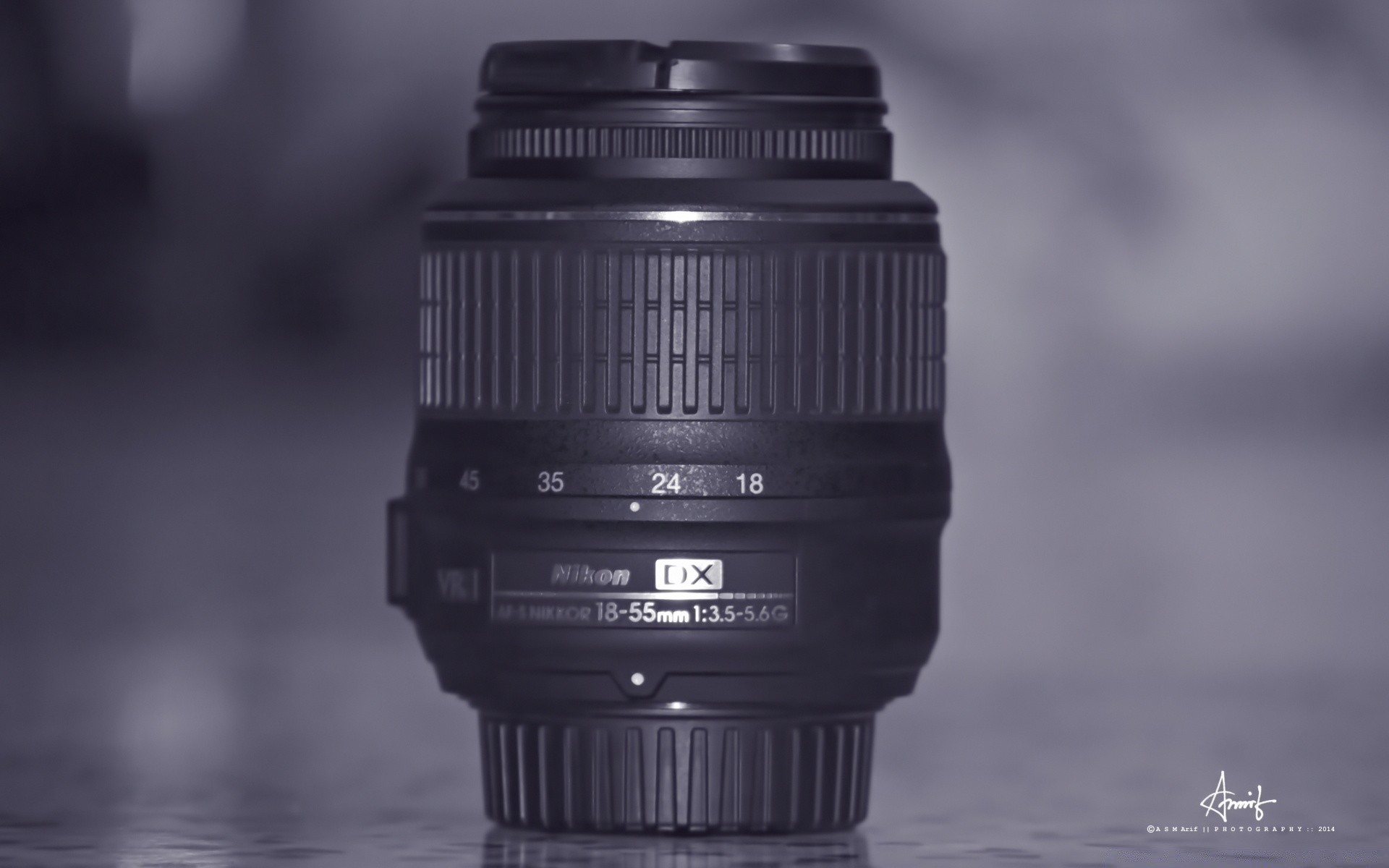Schwarz-Weiß-Bild einer Kamera mit großem Objektiv