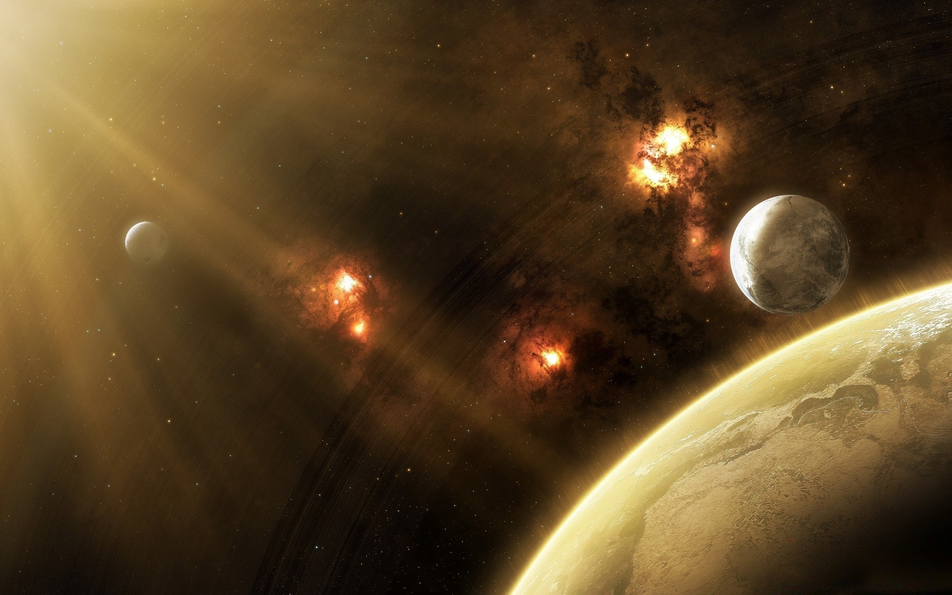 Die Planeten werden von den Strahlen der Sonne beleuchtet
