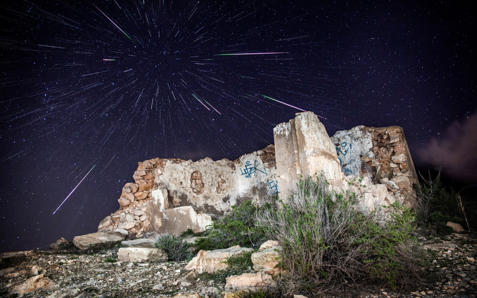 Sternschnuppen auf einem Berg Hintergrund