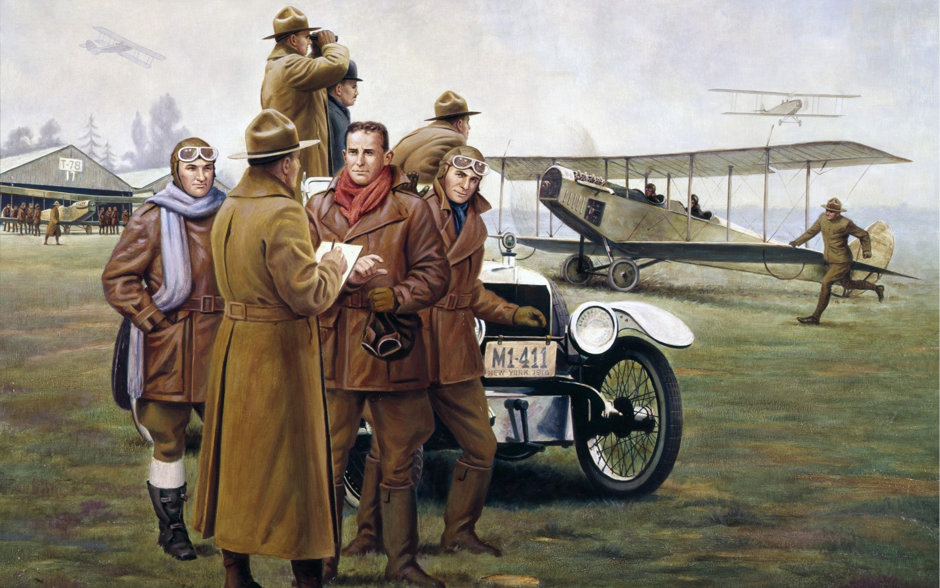 Zeichnung zum Thema Oldtimer und Flugzeuge
