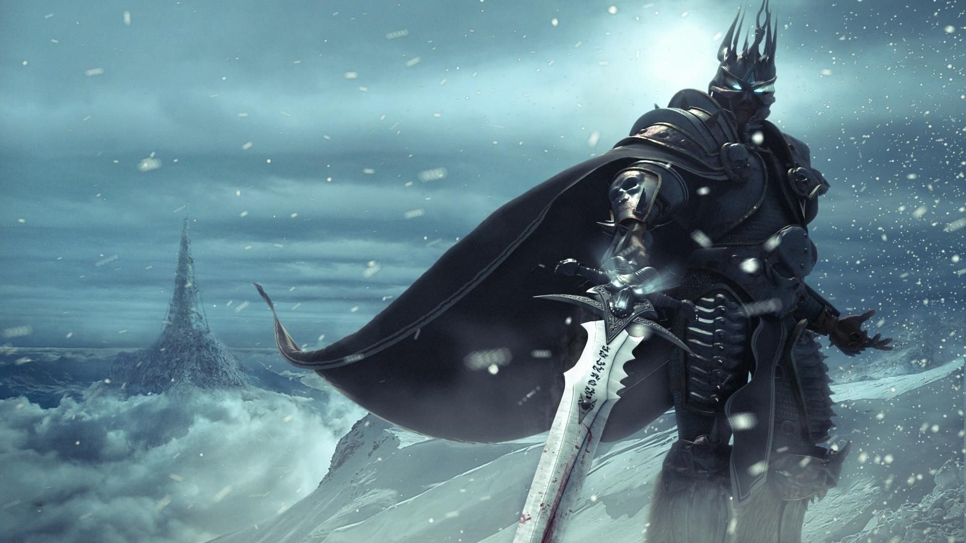 Warcraft-Charakter vor dem Hintergrund einer fantastischen Stadt