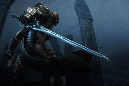 Ein Krieger mit einem Schwert wartet auf das Opfer
