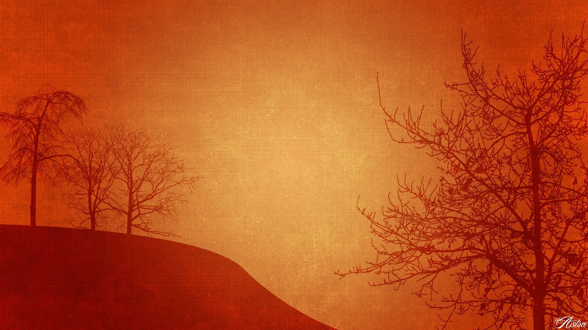 Landschaft. Jahrgang. Bäume. Orange Hintergrund