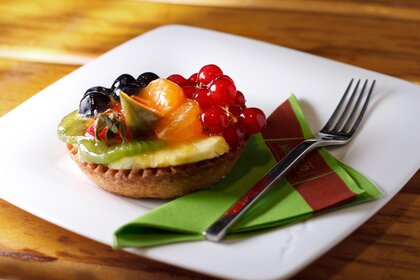 Ein berg von früchten auf einem bunten hintergrundEin Berg von Früchten auf einem bunten Hintergrund